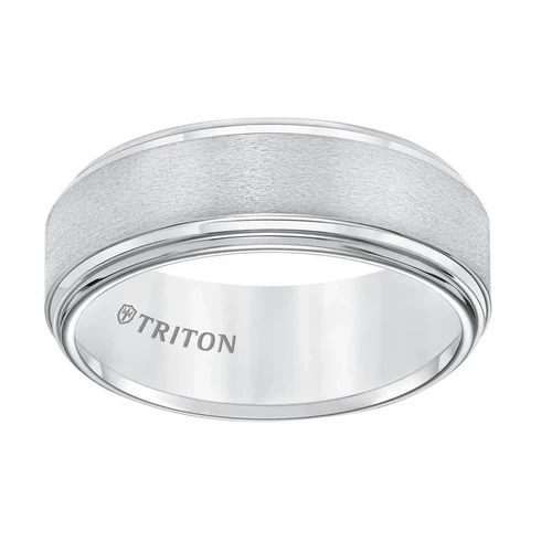 This 8mm Triton white tungsten carbide band by Triton has a unique double stepped edge and a classic satin center finish. This is the perfect wedding ring to represent your love and commitment. Larson Jewelers is proud to be an authorized dealer of Triton Rings. Triton Rings is one of the most well known and respected designers of tungsten rings in the USA. All their rings come with a manufacturer’s warranty that covers size exchanges for life, and repair or replacement in case of accidental damage. Note: There is a fee charged by Triton Rings, not us, for all warranty work to cover shipping and handling.