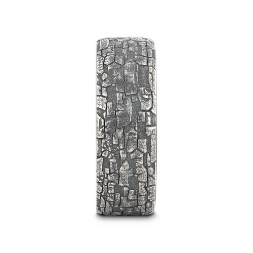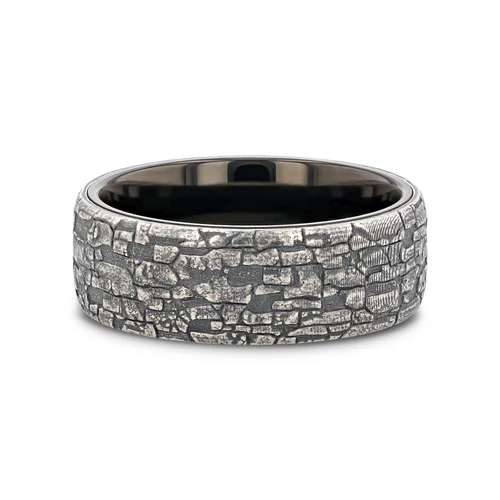- Bold and Rugged Aesthetic: The stonework pattern contrasts beautifully with the sleek black tungsten, creating an edgy yet sophisticated look.