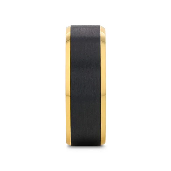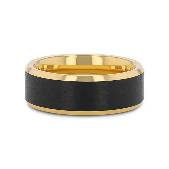 GASTON Gold-Plated Tungsten Beveled Ring with Brushed Black Center – 6mm or 8mm