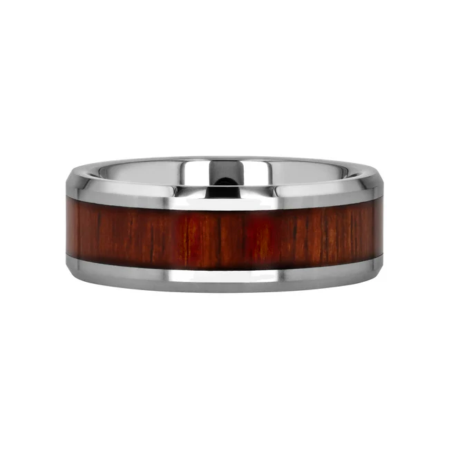 KONA Koa Wood Inlaid Tungsten Carbide Ring with Bevels – 4mm – 12mm