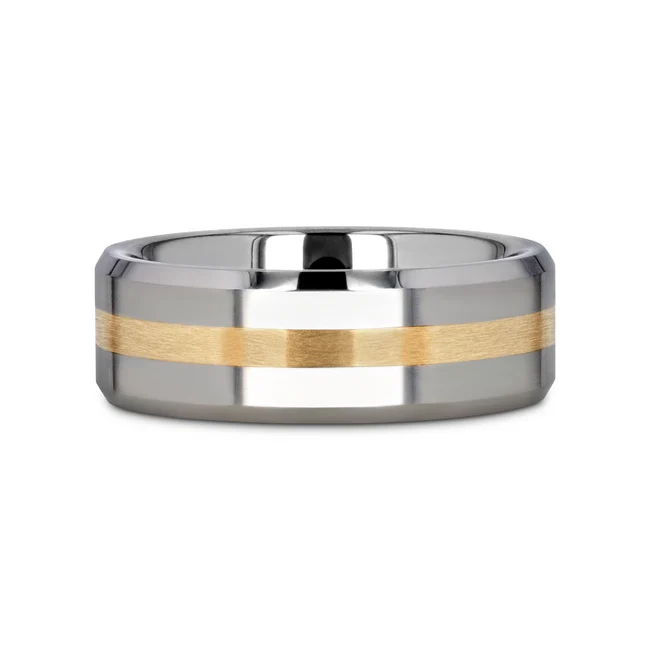 LEGIONAIRE Gold Inlaid Beveled Tungsten Ring – 6mm and 8mm