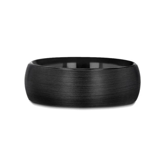 RAIDER Domed Brush Finished Black Tungsten Wedding Band (2mm-12mm)