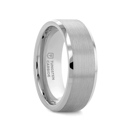 Sheffield Flat Beveled Tungsten Carbide Ring, Brushed Center, Comfort Fit – 4mm to 12mm